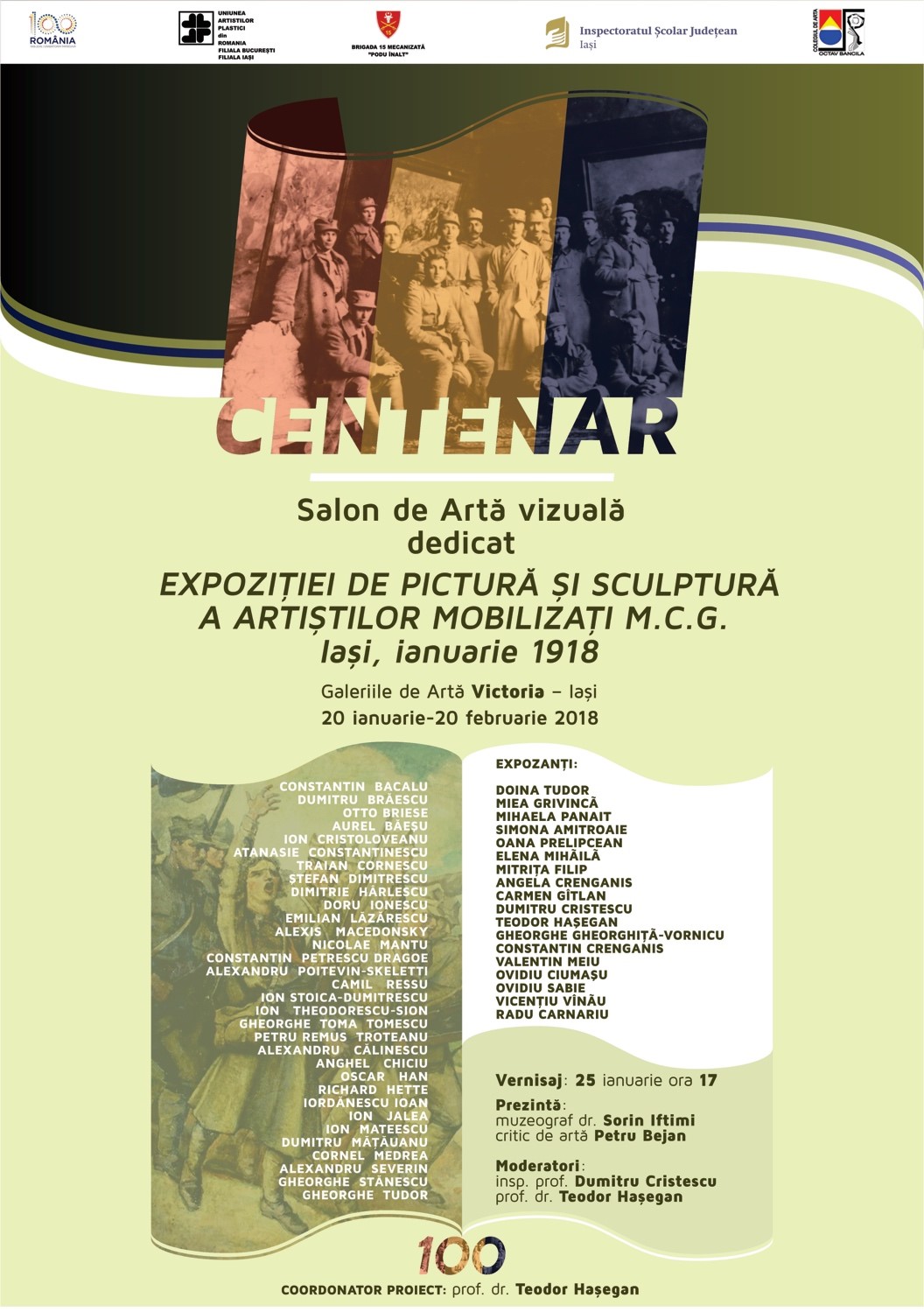 Manifestarea artistico-plastică generată de această inedită iniţiativă a fost Expoziţia de pictură şi sculptură a artiştilor mobilizaţi M.C.G. din ianuarie 1918. Programată iniţial de Crăciun, a fost vernisată în ziua de 24 ianuarie 1918, în localul Şcolii de Arte frumoase din Iaşi, fosta Academie Mihăileană, iar presa locală anunța că începând cu data de 26 ianuarie a fost deschisă publicului larg[2]. Catalogul expoziţiei prezintă 32 de expozanţi (20 de pictori şi 12 sculptori) şi operele expuse: 38 pictură și desene, iar sculptura era prezentă cu 23 de lucrări în bronz şi lemn (Anexa 2). O parte dintre aceste valoroase creații s-au păstrat în colecția Muzeului Militar Naţional Regele Ferdinand I – Bucureşti, alături de alte numeroase lucrări executate de aceiaşi artişti, în anii de după război, sub influenţa trăirilor din în acele momente istorice.