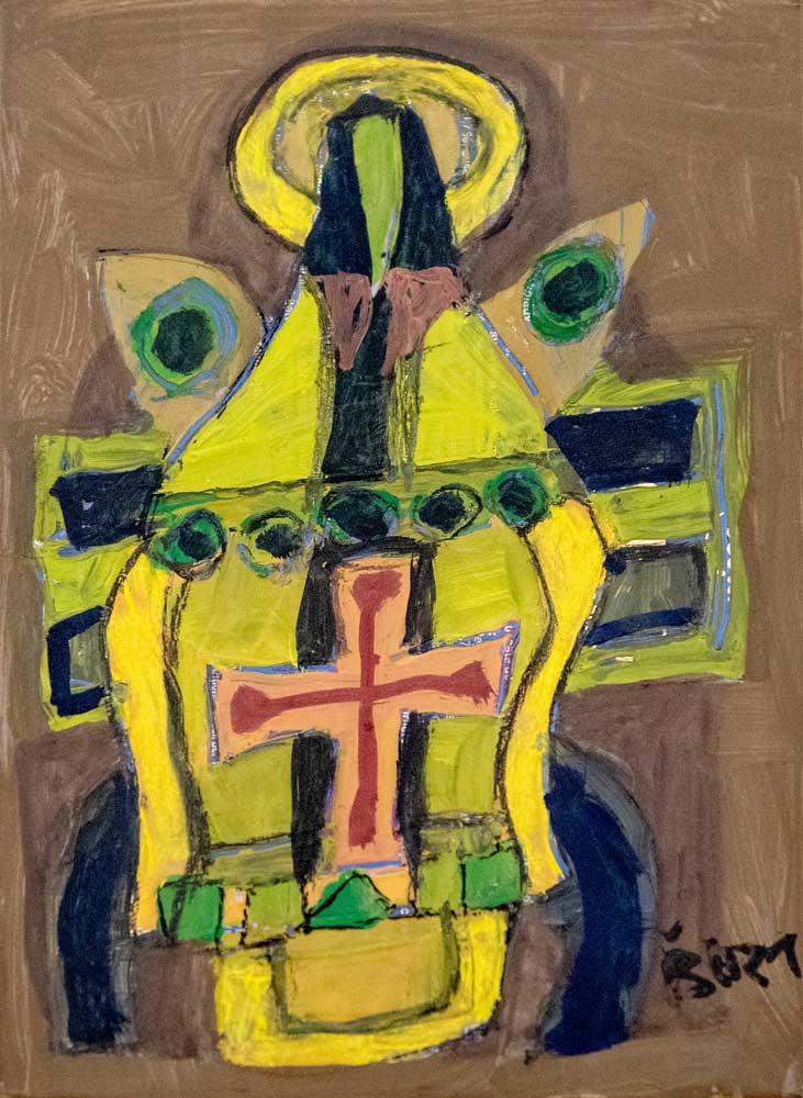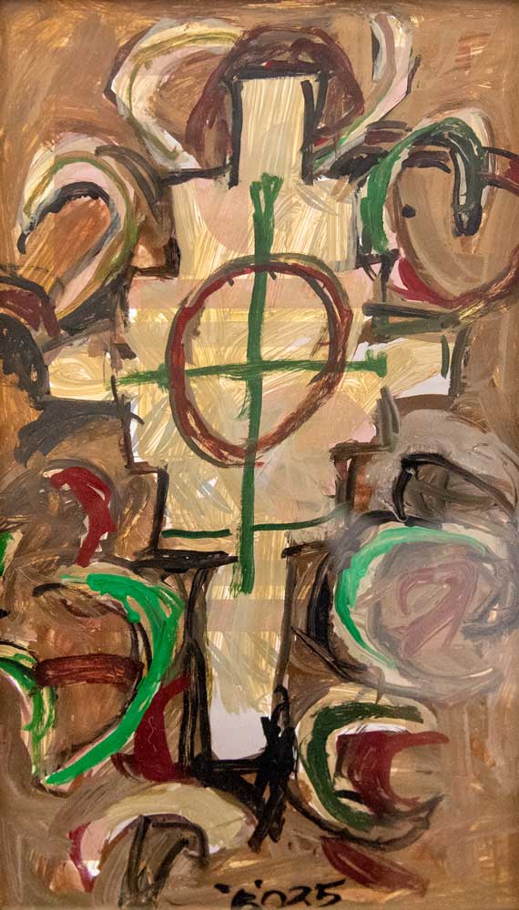Elementul central, Crucea, pe care o vedeți deopotrivă pe afiș și în lucrări, nu este aici un simbol al sfârșitului. La Ilie Boca, crucea este axă, este verticalitate. Sfinții Părinți ne învață că „Crucea este poarta tainelor” (Sfântul Isaac Sirul) și că ea este „semnul iubirii necuprinse” (Sfântul Ioan Gură de Aur). Este modul lui de a spune că viața merge mai departe, că ordinea și spiritul triumfă asupra haosului ori durerii. Această expoziție îmbracă poate și haina unui rămas-bun, dar e și punctul dinspre care se poate pleca în cea mai profundă aventură, aceea a reîntoarcerii acasă. Nu ezit să susțin că maestrul continuă să cultive „stările bune”, cele care te determină să mergi, să te îndepărtezi dar să și revii, să iei aminte, apoi să creezi.