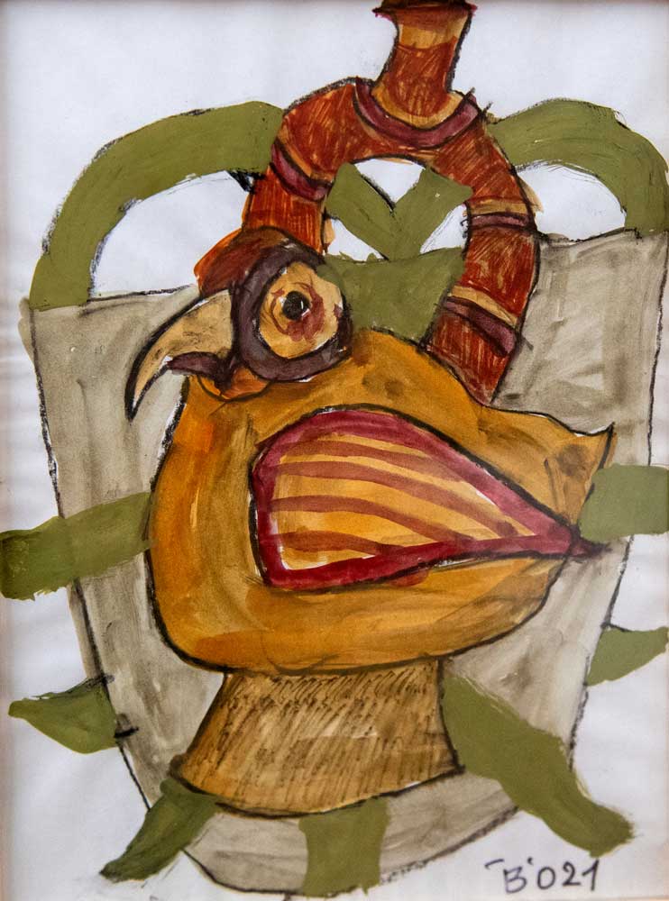 Maestrul ne prezintă expoziția „Stări”, dedicată doamnei sale, Lica. Este un titlu care ne vorbește despre propriile interiorități, implicit despre sensibilitate. Ne aducem aminte, Ilie Boca ne-a spus mereu că, dincolo de rațional, arta vine dintr-o trăire profundă. Destinul a făcut ca doamna Lica să plece prima, dar dacă vă așteptați la o expoziție despre suferință, veți fi surprinși, ea ar trebui să fie citită într-o cu totul altă cheie.